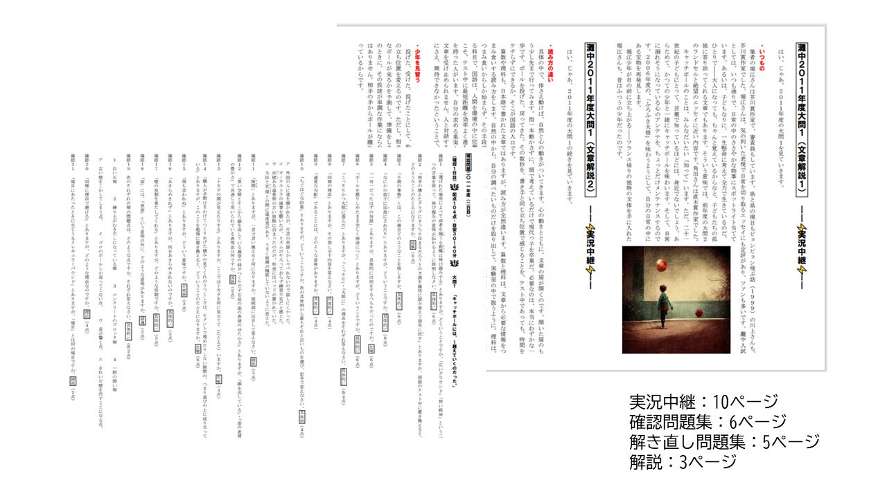 ※灘中2011年度2日目国語の「解き直し用の教材&過去問答案添削」のセットです。