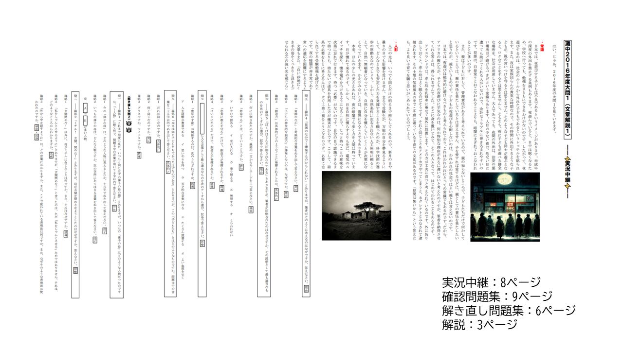 ※灘中2016年度2日目国語の「解き直し用の教材&過去問答案添削」のセットです。